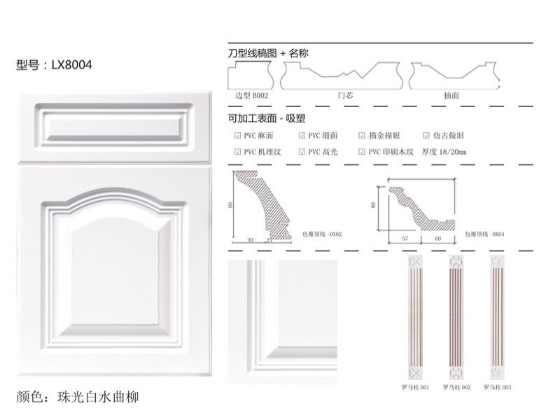 配套生产膜压门,衣柜移门,PET高光肤感门,铝合金玻璃门,拼框门,罗马柱,顶线,网红格栅等