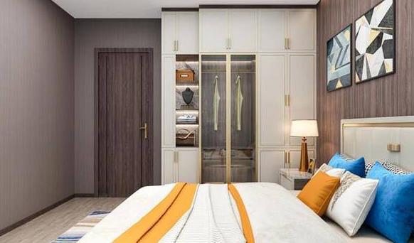 衣柜顶着,能收纳的东西比衣帽间少得多。在利用顶部空间时,可以放置不常用的被子和不适合季节的衣服,避免衣柜顶部积灰。衣柜用滑动门节省空间。